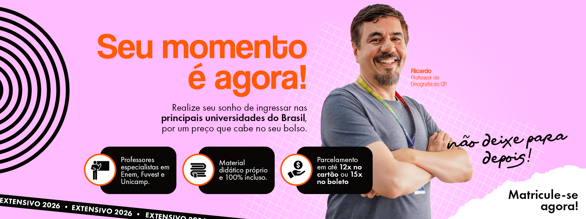 Sempre alinhados com as necessidades do vestibulando, esse time sensacional ajuda o aluno a turbinar seu desempenho, com orientação pedagógica assertiva, e aulas incríveis!